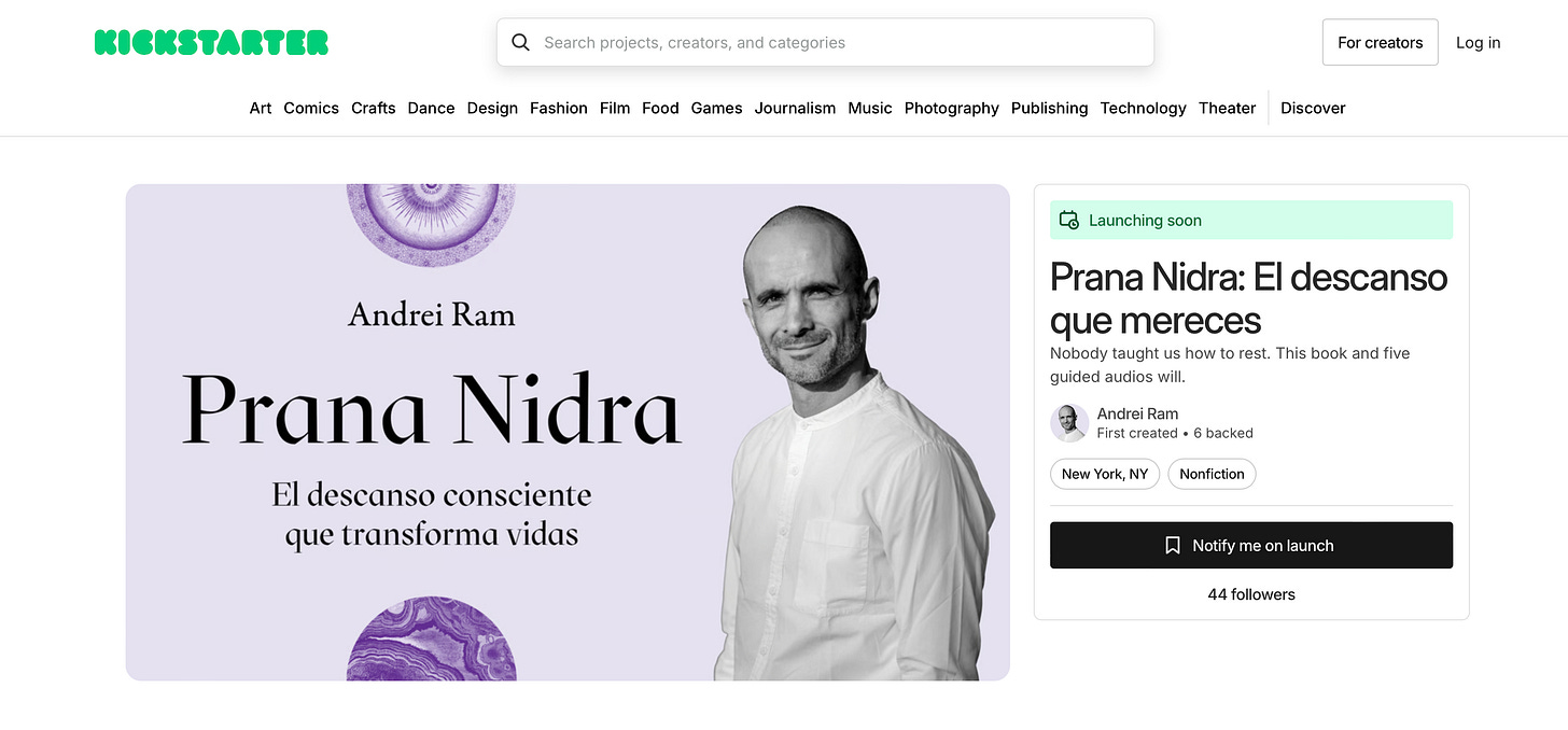 Desde ya puedes ir a la página de precampaña en Kickstarter y registrarte para que recibas el enlace apenas lancemos el viernes temprano. Tu apoyo ese día va a definir si logramos o no la meta y si podemos llevar este mensaje de descanso a más personas.