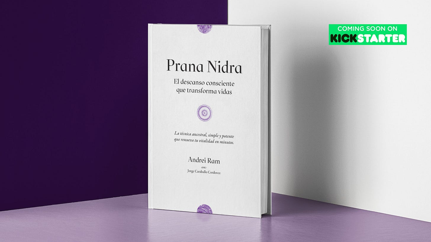 El prana nidra, la práctica que presentamos en el libro, es una técnica de descanso consciente que cualquier persona puede hacer en siete o veintiún minutos. Solo basta acostarse bocarriba y hacer una serie sencilla de visualizaciones y respiraciones que van aquietando la mente y relajando el cuerpo. Sus efectos son una liviandad, una claridad y una amplificación enfocada de la energía que cada vez son más esquivas en este mundo frenético. Acá un audio guiado por Andrei para que lo practiques.